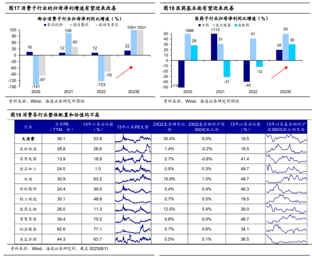 结构上关注性价比高的耗尽,科技是中耐久焦点。短期看,低估低配的耗尽有望在计策催化下迎来开拓机遇。面前耗尽板块的估值和基金建立已处在历史低位:从估值看,截止23/08/18,大耗尽板块的PE(TTM,下同)处于2013年以来54%的历史分位;从机构建立看,23Q2耗尽板块超配比例着落至7.8个百分点,处于13年以来20%的历史分位。计策催化下耗尽基本面有望迎来改善,如前文所述,耗尽是稳增长的宏大抓手,7月政事局会议强调扩内需,对老本阛阓定调积极,若后续耗尽计策、活跃老本阛阓磋商计策落地,在计策刺激下阛阓抵耗尽的基本面预期有望扭转,畴昔一段时候耗尽的估值及公募基金等机构的持仓有望趋于平衡,前期跌幅较大的耗尽板块有望迎来回转。此外,跟着后续活跃老本阛阓的磋商计策落地,券商也有望昭彰受益。